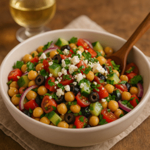 healthy recipe Mediterranean Chickpea Salad with Lemon Vinaigrette – A Refreshing & Healthy Delight Show recipe